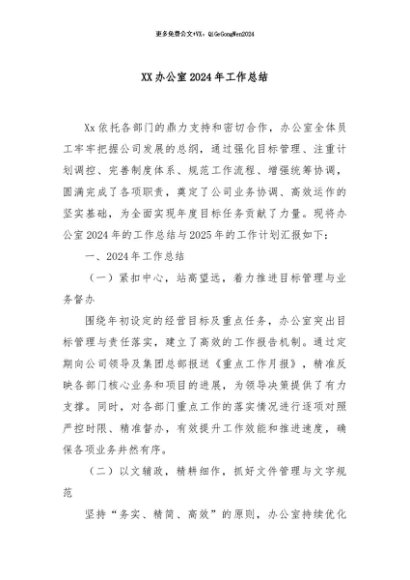 / 【七哥公文】2024年:XX办公室2024年工作总结+更多免费公文+VX:QiGeGongWen2024