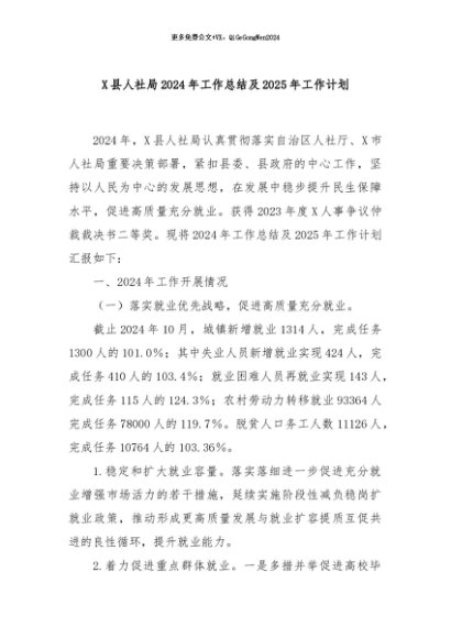 / 【七哥公文】2024年:X县人社局2024年工作总结及2025年工作计划+更多免费公文+VX:QiGeGongWen2024