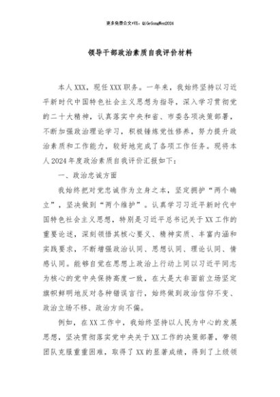 【七哥公文】2024年:领导干部政治素质自我评价材料+更多免费公文+VX:QiGeGongWen2024