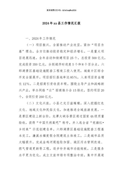 / 【七哥公文】2024年:2024年xx县工作情况汇报+更多免费公文+VX:QiGeGongWen2024