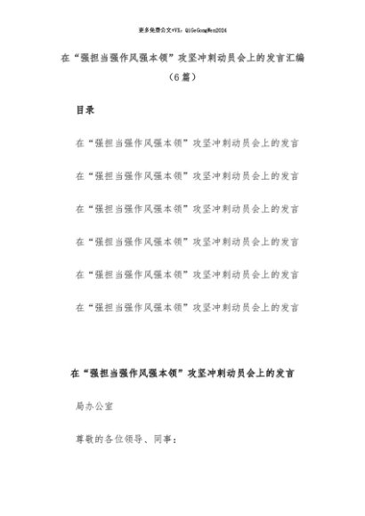 【七哥公文】2024年:(6篇)在“强担当强作风强本领”攻坚冲刺动员会上的发言汇编+更多免费公文+VX:QiGeGongWen2024