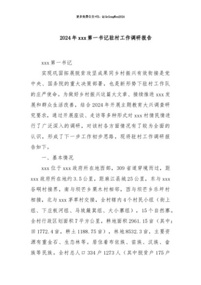 / 【七哥公文】2024年:2024年xxx第一书记驻村工作调研报告+更多免费公文+VX:QiGeGongWen2024