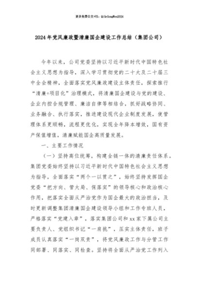 【七哥公文】2024年:2024年党风廉政暨清廉国企建设工作总结(集团公司)+更多免费公文+VX:QiGeGongWen2024