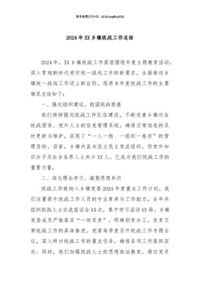 / 【七哥公文】2024年:2024年XX乡镇统战工作总结+更多免费公文+VX:QiGeGongWen2024