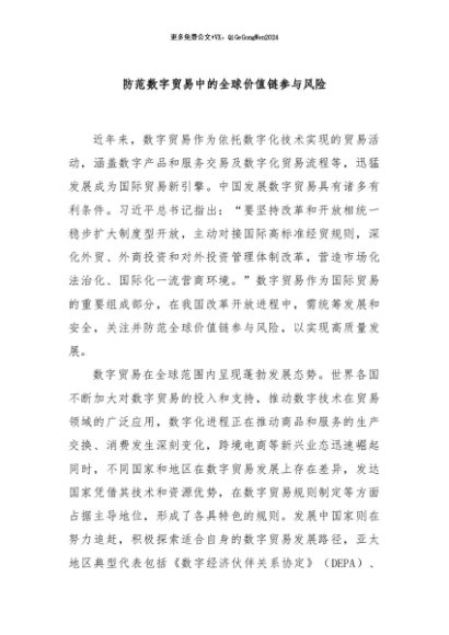 / 【七哥公文】2024年:防范数字贸易中的全球价值链参与风险+更多免费公文+VX:QiGeGongWen2024