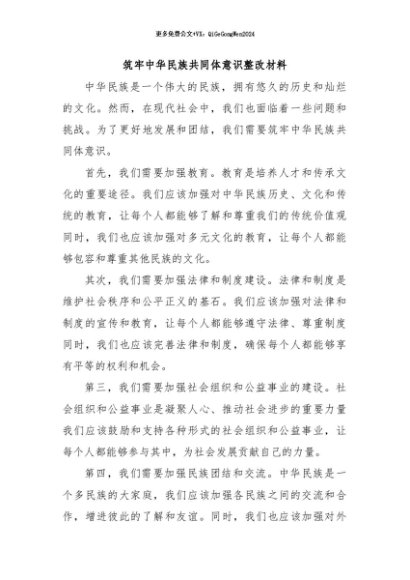 / 【七哥公文】2024年:筑牢中华民族共同体意识整改材料+更多免费公文+VX:QiGeGongWen2024