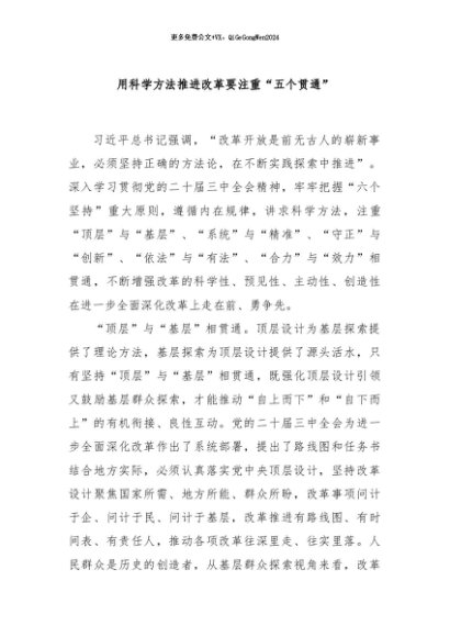 【七哥公文】2024年:用科学方法推进改革要注重“五个贯通”+更多免费公文+VX:QiGeGongWen2024