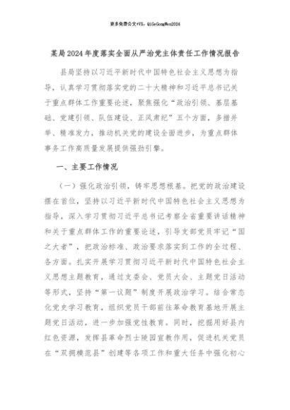 【七哥公文】2024年:某局2024年度落实全面从严治党主体责任工作情况报告+更多免费公文+VX:QiGeGongWen2024