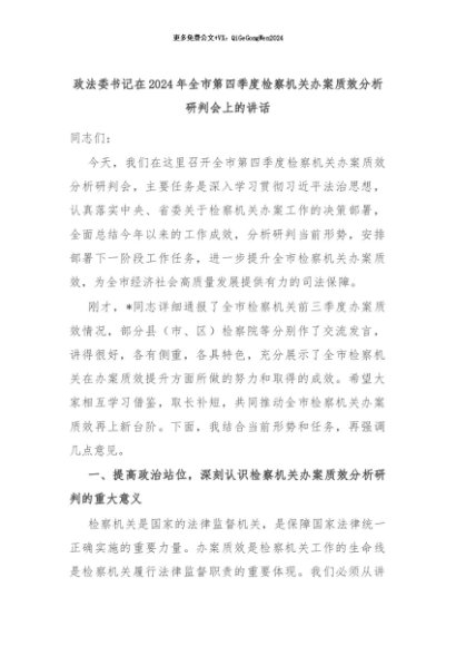 【七哥公文】2024年:政法委书记在2024年全市第四季度检察机关办案质效分析研判会上的讲话+更多免费公文+VX:QiGeGongWen2024