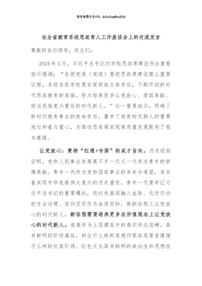 / 【七哥公文】2024年:在全省教育系统思政育人工作座谈会上的交流发言+更多免费公文+VX:QiGeGongWen2024
