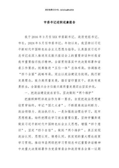 / 【七哥公文】2024年:市委书记述职述廉报告+更多免费公文+VX:QiGeGongWen2024