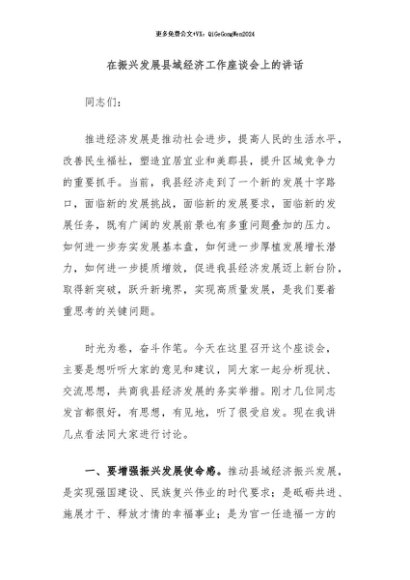 / 【七哥公文】2024年:在振兴发展县域经济工作座谈会上的讲话+更多免费公文+VX:QiGeGongWen2024