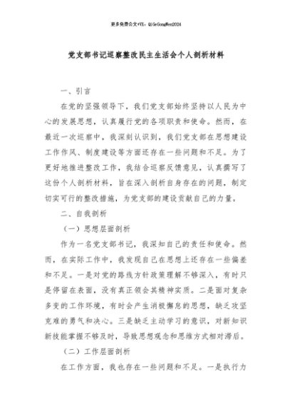 / 【七哥公文】2024年:党支部书记巡察整改民主生活会个人剖析材料+更多免费公文+VX:QiGeGongWen2024