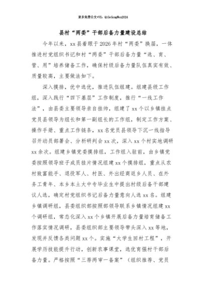/ 【七哥公文】2024年:县村“两委”干部后备力量建设总结+更多免费公文+VX:QiGeGongWen2024