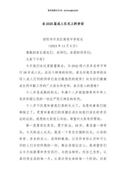/ 【七哥公文】2024年:在2025届成人仪式上的讲话+更多免费公文+VX:QiGeGongWen2024