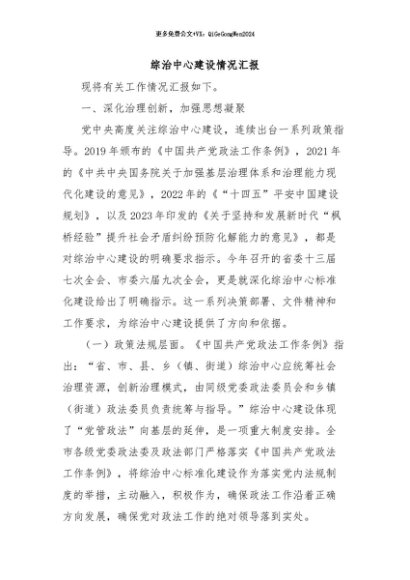 / 【七哥公文】2024年:综治中心建设情况汇报+更多免费公文+VX:QiGeGongWen2024