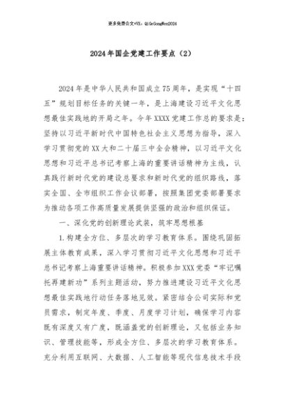 / 【七哥公文】2024年:2024年国企党建工作要点(2)+更多免费公文+VX:QiGeGongWen2024