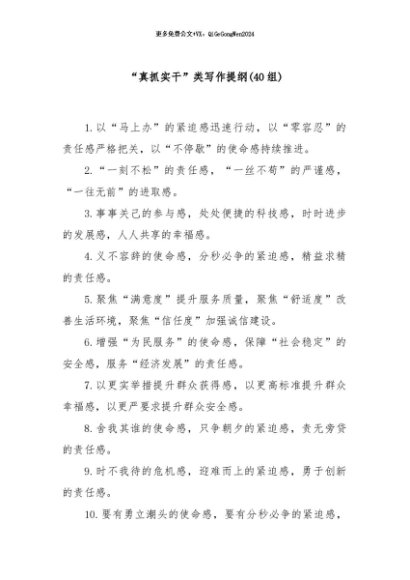 【七哥公文】2024年:(40组)“真抓实干”类写作提纲+更多免费公文+VX:QiGeGongWen2024