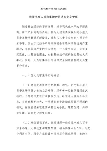 / 【七哥公文】2024年:浅谈小型人员密集场所的消防安全管理+更多免费公文+VX:QiGeGongWen2024