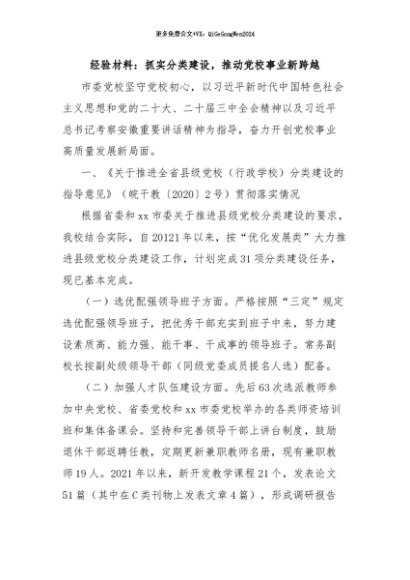 / 【七哥公文】2024年:经验材料:抓实分类建设,推动党校事业新跨越+更多免费公文+VX:QiGeGongWen2024