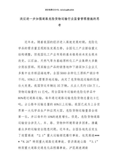 【七哥公文】2024年:浅议进一步加强道路危险货物运输行业监督管理措施的思考+更多免费公文+VX:QiGeGongWen2024