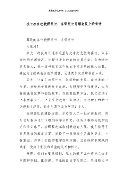 / 【七哥公文】2024年:校长在全校教研组长、备课组长两组会议上的讲话+更多免费公文+VX:QiGeGongWen2024