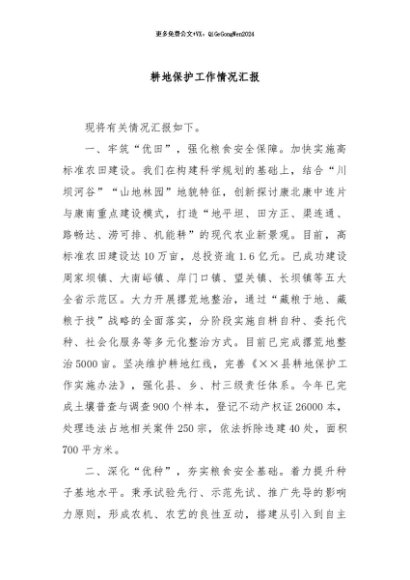 / 【七哥公文】2024年:耕地保护工作情况汇报+更多免费公文+VX:QiGeGongWen2024