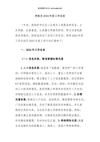 / 【七哥公文】2024年:网格员2024年度工作总结+更多免费公文+VX:QiGeGongWen2024