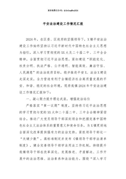 / 【七哥公文】2024年:平安法治建设工作情况汇报+更多免费公文+VX:QiGeGongWen2024