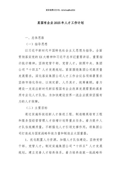 / 【七哥公文】2024年:某国有企业2025年人才工作计划+更多免费公文+VX:QiGeGongWen2024