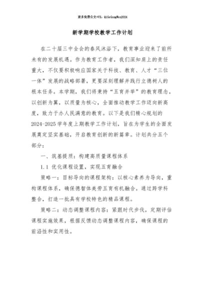 / 【七哥公文】2024年:新学期学校教学工作计划+更多免费公文+VX:QiGeGongWen2024