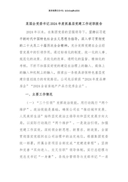 / 【七哥公文】2024年:某国企党委书记2024年度抓基层党建工作述职报告+更多免费公文+VX:QiGeGongWen2024