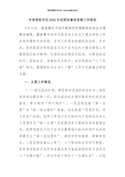 / 【七哥公文】2024年:市局党组书记2024年述职述廉述党建工作报告+更多免费公文+VX:QiGeGongWen2024