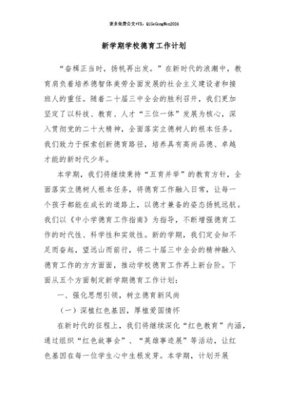 / 【七哥公文】2024年:新学期学校德育工作计划+更多免费公文+VX:QiGeGongWen2024