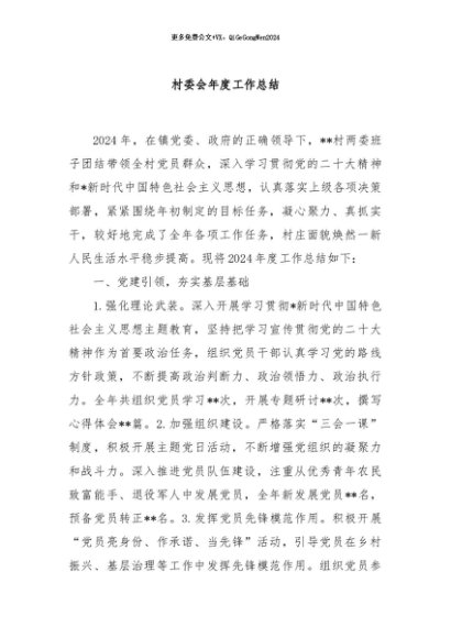 / 【七哥公文】2024年:村委会年度工作总结+更多免费公文+VX:QiGeGongWen2024