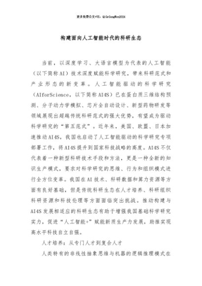 【七哥公文】2024年:构建面向人工智能时代的科研生态+更多免费公文+VX:QiGeGongWen2024