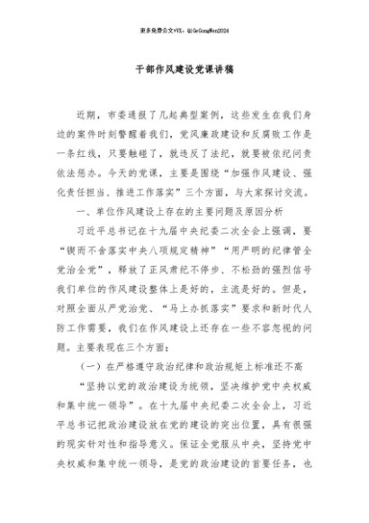 / 【七哥公文】2024年:干部作风建设党课讲稿+更多免费公文+VX:QiGeGongWen2024