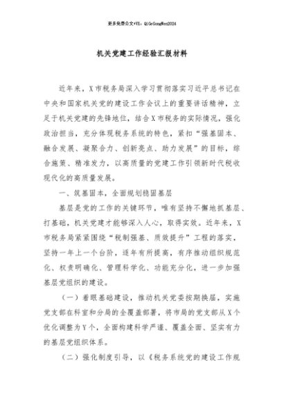 / 【七哥公文】2024年:机关党建工作经验汇报材料+更多免费公文+VX:QiGeGongWen2024