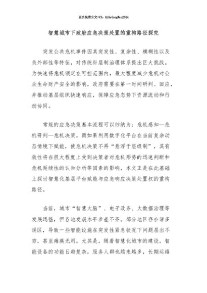 / 【七哥公文】2024年:智慧城市下政府应急决策处置的重构路径探究+更多免费公文+VX:QiGeGongWen2024