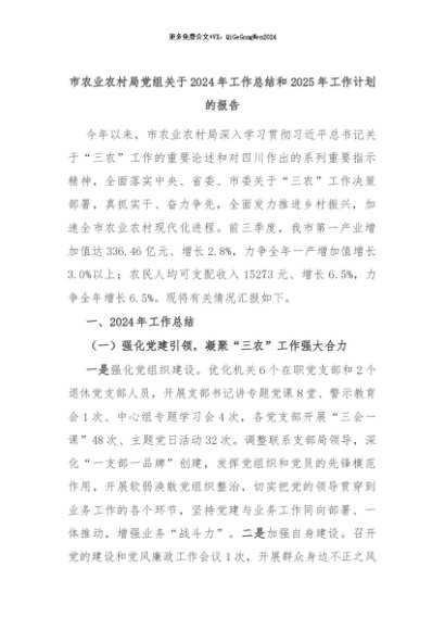 【七哥公文】2024年:市农业农村局党组关于2024年工作总结和2025年工作计划的报告+更多免费公文+VX:QiGeGongWen2024