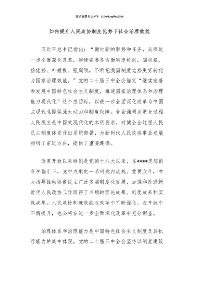 【七哥公文】2024年:如何提升人民政协制度优势下社会治理效能+更多免费公文+VX:QiGeGongWen2024