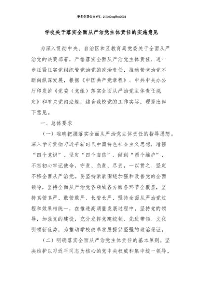 / 【七哥公文】2024年:学校关于落实全面从严治党主体责任的实施意见+更多免费公文+VX:QiGeGongWen2024