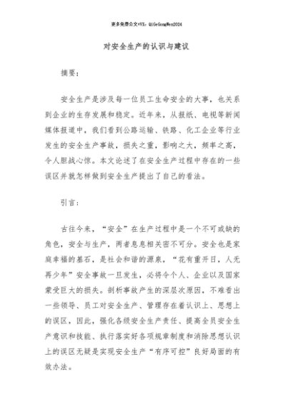 / 【七哥公文】2024年:对安全生产的认识与建议+更多免费公文+VX:QiGeGongWen2024