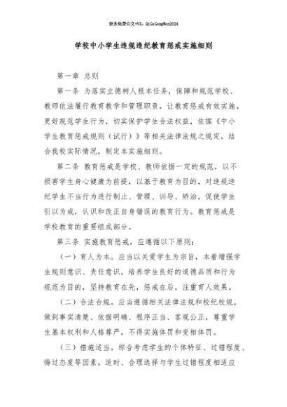 / 【七哥公文】2024年:学校中小学生违规违纪教育惩戒实施细则+更多免费公文+VX:QiGeGongWen2024