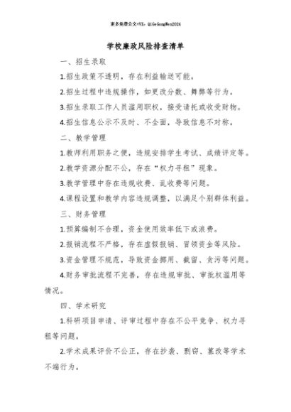 【七哥公文】2024年:学校廉政风险排查清单+更多免费公文+VX:QiGeGongWen2024