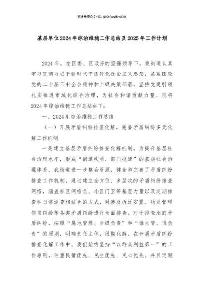 【七哥公文】2024年:基层单位2024年综治维稳工作总结及2025年工作计划+更多免费公文+VX:QiGeGongWen2024
