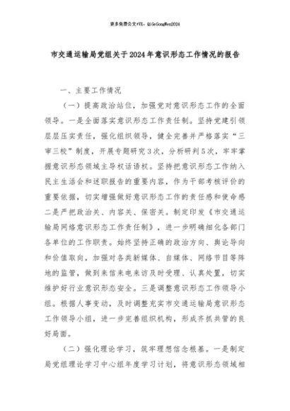 【七哥公文】2024年:市交通运输局党组关于2024年意识形态工作情况的报告+更多免费公文+VX:QiGeGongWen2024