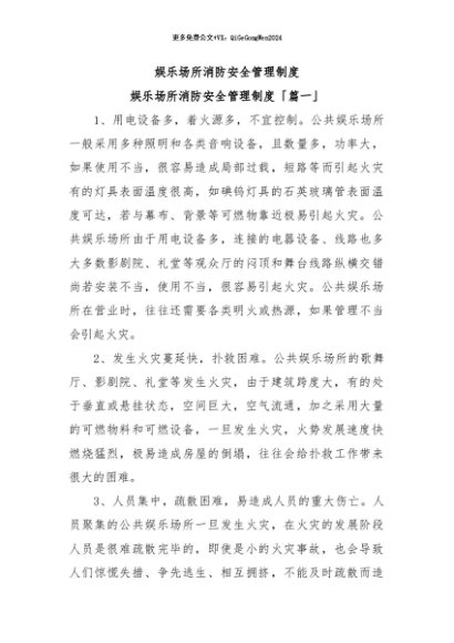 / 【七哥公文】2024年:娱乐场所消防安全管理制度+更多免费公文+VX:QiGeGongWen2024