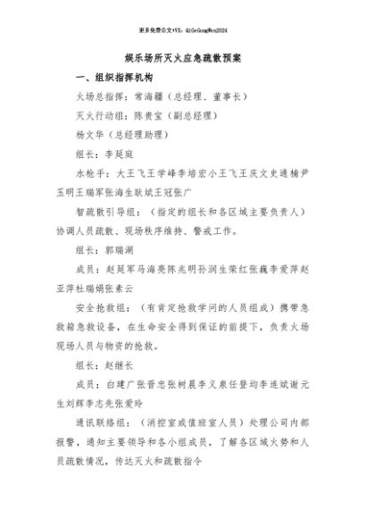 / 【七哥公文】2024年:娱乐场所灭火应急疏散预案+更多免费公文+VX:QiGeGongWen2024