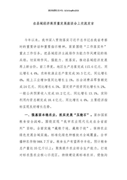 / 【七哥公文】2024年:在县域经济高质量发展座谈会上交流发言+更多免费公文+VX:QiGeGongWen2024